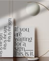"If you are waiting for a sign, this is it."